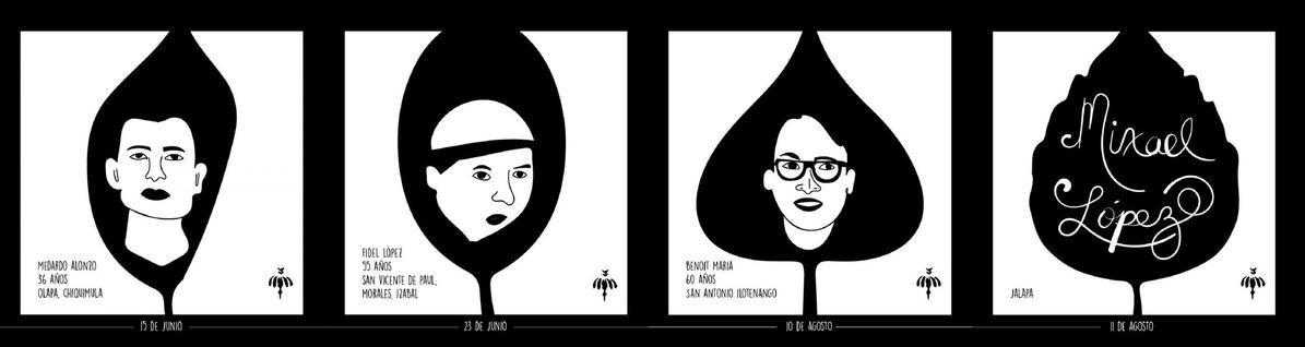 La cantante Sara Curruchich publicó en su cuenta de twitter una serie de ilustraciones que rememoran la vida de las y los defensores de derechos humanos asesinados en 2020. En ellas se encuentran los nombres, rostros, edades y lugares de residencia de ocho personas.