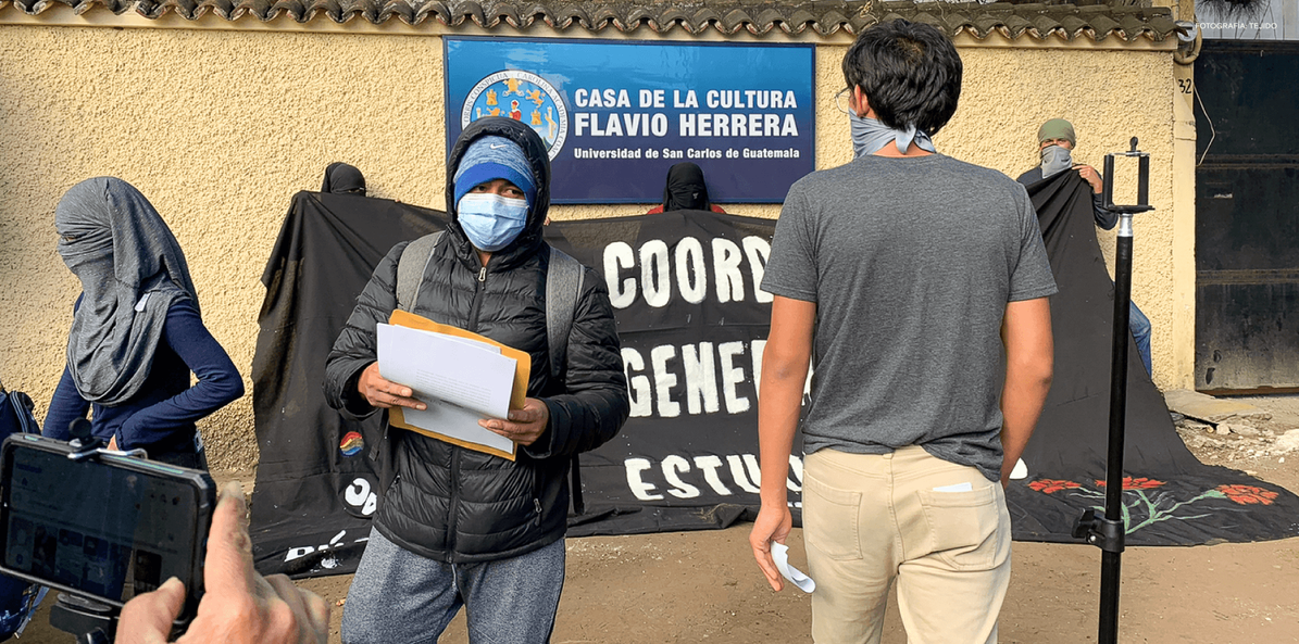 Frente a las instalaciones de la Casa Universitaria de la Cultura Flavio Herrera, ubicado en la calle Mariscal 7-56 zona 11 las y los estudiantes, representantes de la Coordinadora General de Estudiantes y docentes que les acuerpan, se presentaron el miércoles 21 de diciembre, para entregar un memorial con el que intentan otra vez, iniciar el diálogo.