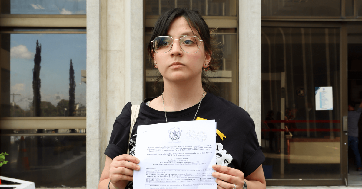 Nanci Sinto y Dulce Archila fueron citadas para revisar las medidas de coerción que se les impusieron por la denuncia del Ministerio Público (MP), Congreso y Procuraduría General de la Nación (PGN). Las tres instituciones las acusan de “depredación de bienes culturales” por participar en las manifestaciones del #21N. La audiencia, realizada este 12 de septiembre en el 5to Nivel de la Torre de Tribunales, surge debido a que Sala Tercera solicitó realizar nuevamente un juicio contra ellas, tras la apelación del MP, PGN y Congreso. La jueza a cargo es Sonia Martínez Obregón.