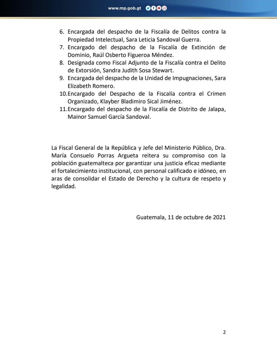 “Cada vez que el Ministerio Público hace un cambio importante cambia seis o más fiscalías al mismo tiempo para dispersar el desgaste político que sería cambiar una sola Fiscalía. De esa manera se hizo con Juan Francisco Sandoval. En esta oportunidad, se realizaron cambios en once fiscalías, el que llamó más la atención fue el de Hilda Pineda que pasó de una fiscalía de Derechos Humanos donde alcanzó alta profesionalización, a dirigir una fiscalía recién creada de delitos contra turistas”.
