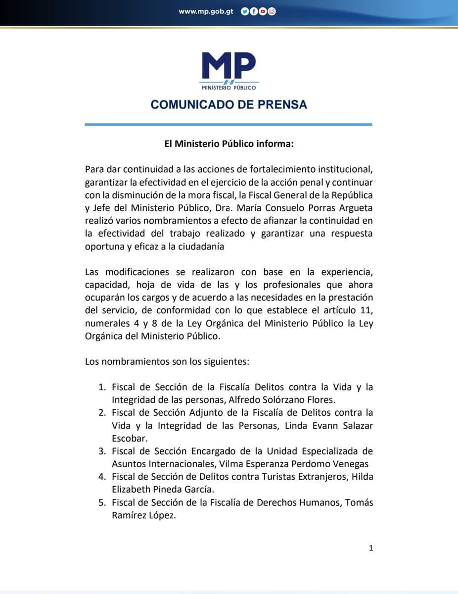 Una perspectiva similar tiene la ex fiscal general Thelma Aldana, quien con su carácter mordaz y asertivo dijo, que el Ministerio Público no es una entidad que pueda cambiar personas al gusto del Fiscal General, eso es muy grave y va contra la institucionalidad.