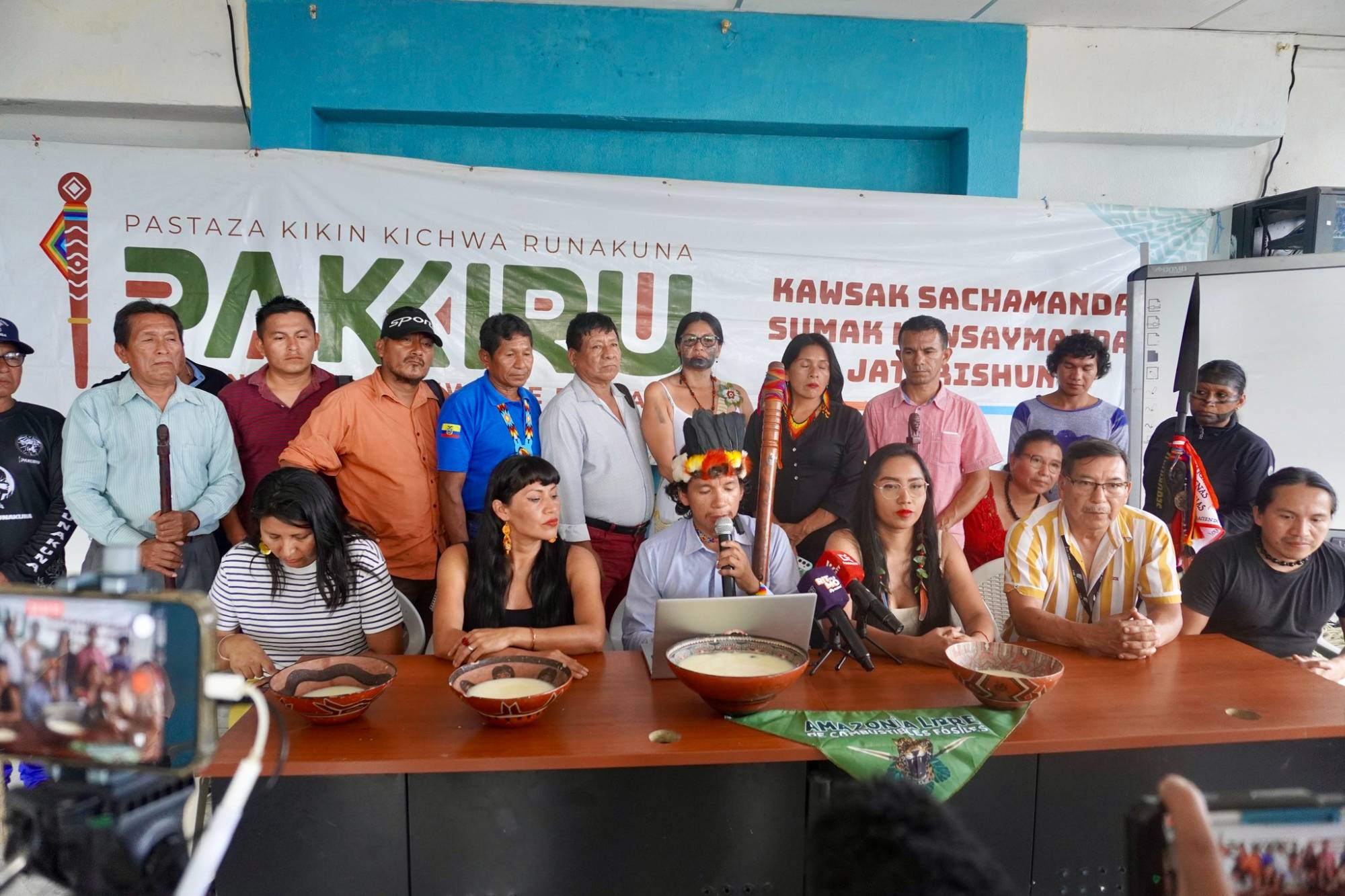 PAKKIRU apoya la resistencia de Las Naves y Palo Quemado y aunque todavía no han conectado con los habitantes de Kimsakocha, Chávez dice que es cuestión de tejer esas redes. Si bien en Pastaza no hay amenazas de proyectos mineros todavía, a sus habitantes les preocupa el avance de la minería ilegal, una actividad ilícita que el Estado no ha podido controlar y crece aceleradamente, principalmente en el norte y sur de la Amazonía.