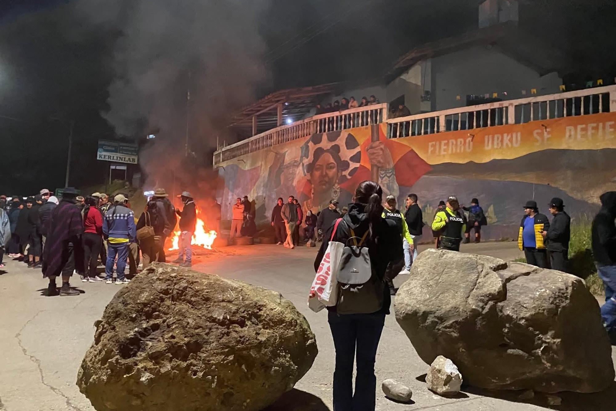 El poblado kichwa de Saraguro, que se resiste a un proyecto minero en el páramo de Fierro Urku, participó en las manifestaciones y bloqueos de vías. Foto: cortesía Saraguro Inmediato