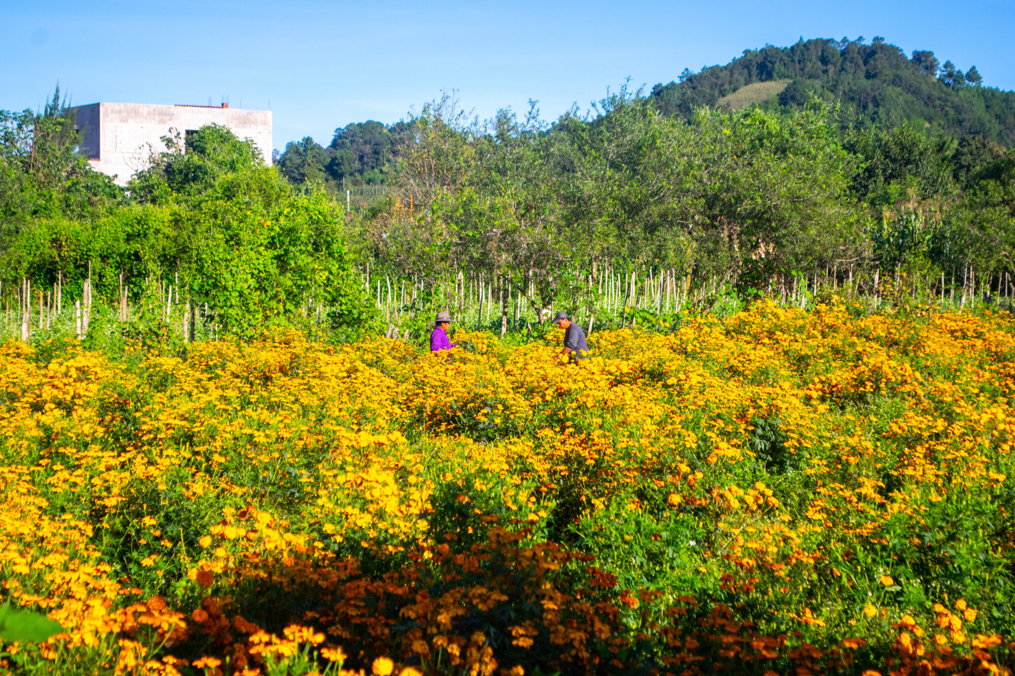 Hoy en día, el cultivo ha crecido tanto que esta familia se ha convertido en proveedor principal de esta flor. Cada 30 y 31 de octubre, montan puntos de venta en lugares como la Escuela Mariano Arellano y la Municipalidad de San Juan Comalapa, lugares donde se forman largas filas de familias ansiosas por llevar su manojo de flor de muerto. “Este año, tenemos pedidos de todo el municipio. A veces, la gente nos dice que no es solo por la flor, sino por lo que representa. Es como llevar un pedacito de la tradición a casa”.