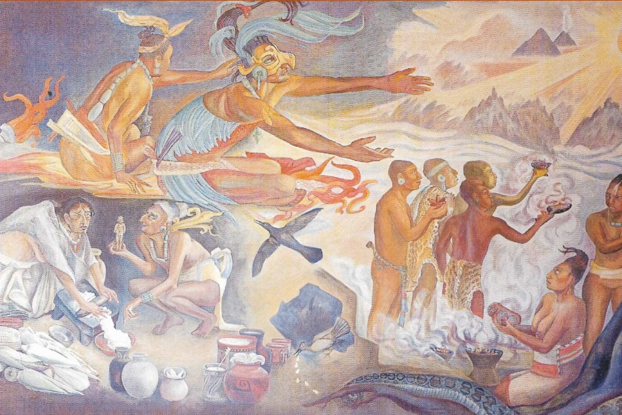 El resultado no fue una copia, sino una lectura. Lazo comprendió que la pintura prehispánica tenía una lógica propia, una gramática visual en la que el color, la figura y el movimiento actuaban como palabras dentro de un relato pictórico. En lugar de reproducir esas formas, buscó traducirlas, construir con ellas un puente entre el conocimiento ancestral y la sensibilidad moderna.