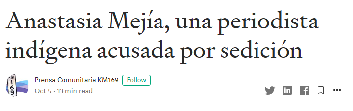 También Nelton Rivera en una nota para Prensa Comunitaria, explica que, durante un mes, el MP preparó la acusación contra la periodista Anastasia Mejía de 49 años, directora de Xol Abaj Radio y Xol Abaj TV, trabajadora social, madre, ajq’ij (guía espiritual maya), y de Petrona Siy Castro de 68 años, presidenta de la Asociación de Comerciantes, defensora de derechos humanos y del territorio, también ajq’ij. La nota de Rivera también explica que Anastasia estuvo ese día transmitiendo lo ocurrido en su función de periodista comunitaria y que incluso, otro periodista de la localidad se acerca a ella en su transmisión, en donde se puede ver a Anastasia con el celular en la mano documentando.