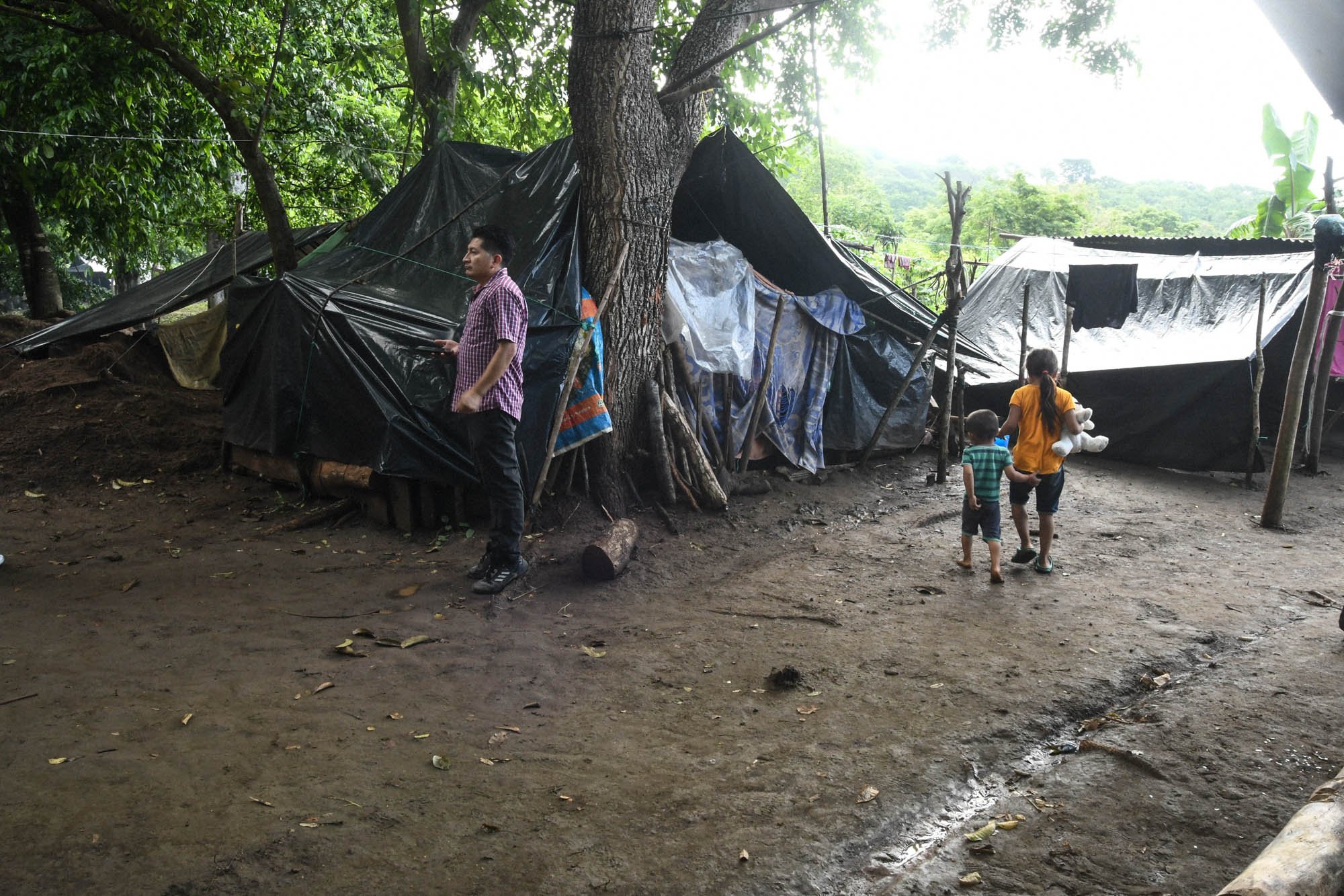 Después del desalojo, las familias se encuentran reasentadas temporalmente en la comunidad de Santa Rosita, arrinconadas debajo de árboles y hasta la fecha no han sido atendidas.