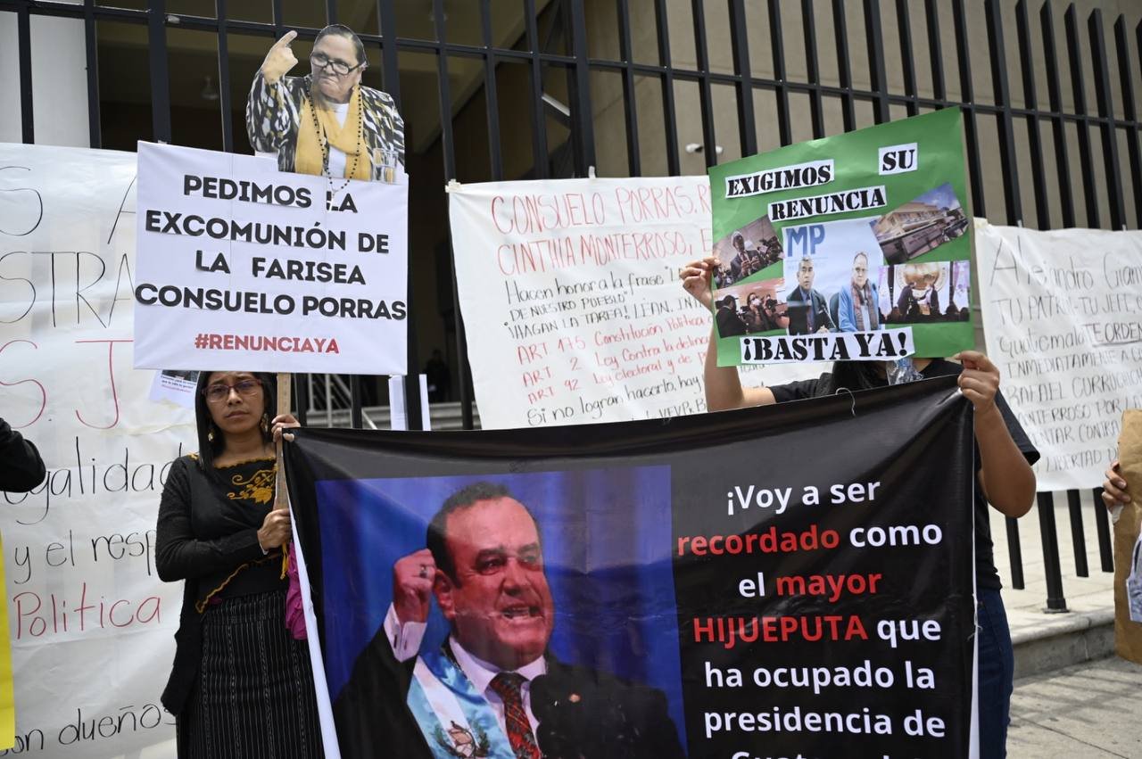 Desde hace unas semanas los ciudadanos han expresado su descontento con las acciones que emprende el MP en contra de la democracia y han exigido la renuncia de Porras frente a la sede central del ente investigador y en la plaza central.