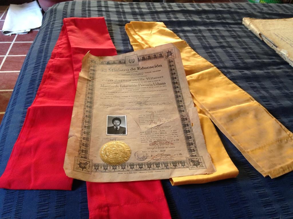 Sus estudios de educación básica los cursó en el Instituto Tezulutlán, que para entonces estaba en el lugar donde ahora se encuentra el Ministerio de Educación. “Andábamos con los pantalones y los zapatos rotos, por nuestra condición de pobreza. Fue ahí donde él empezó a tomar conciencia de la situación. Sus estudios de diversificado, en el Instituto Rafael Aqueche, a finales de los 70, consolidaron su forma de pensar. En esos años compartió con Leonel Caballeros, subsecretario de la Asociación de Estudiantes Aquechistas, asesinado junto al dirigente universitario, Robin García, en 1977.