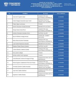 Listado de los 101 diputados que votaron