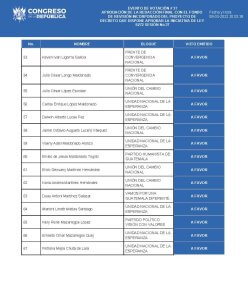 Diputados que dijeron sí a penalizar el aborto en Guatemala