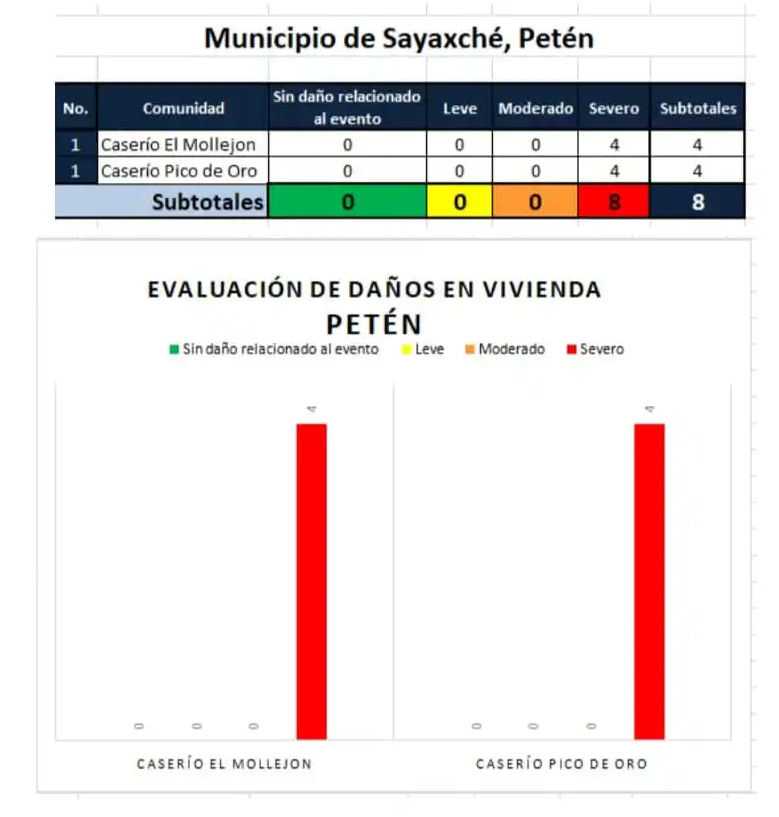 Después de las tormentas, 17 viviendas del Mollejón quedaron destruidas y/o con daños, pero solo cuatro serían tomadas en cuenta para el proceso de reconstrucción que lidera el Gobierno de Alejandro Giammattei. El resto de la comunidad deberá continuar viviendo en las casas tal como quedaron cuando el río retrocedió.