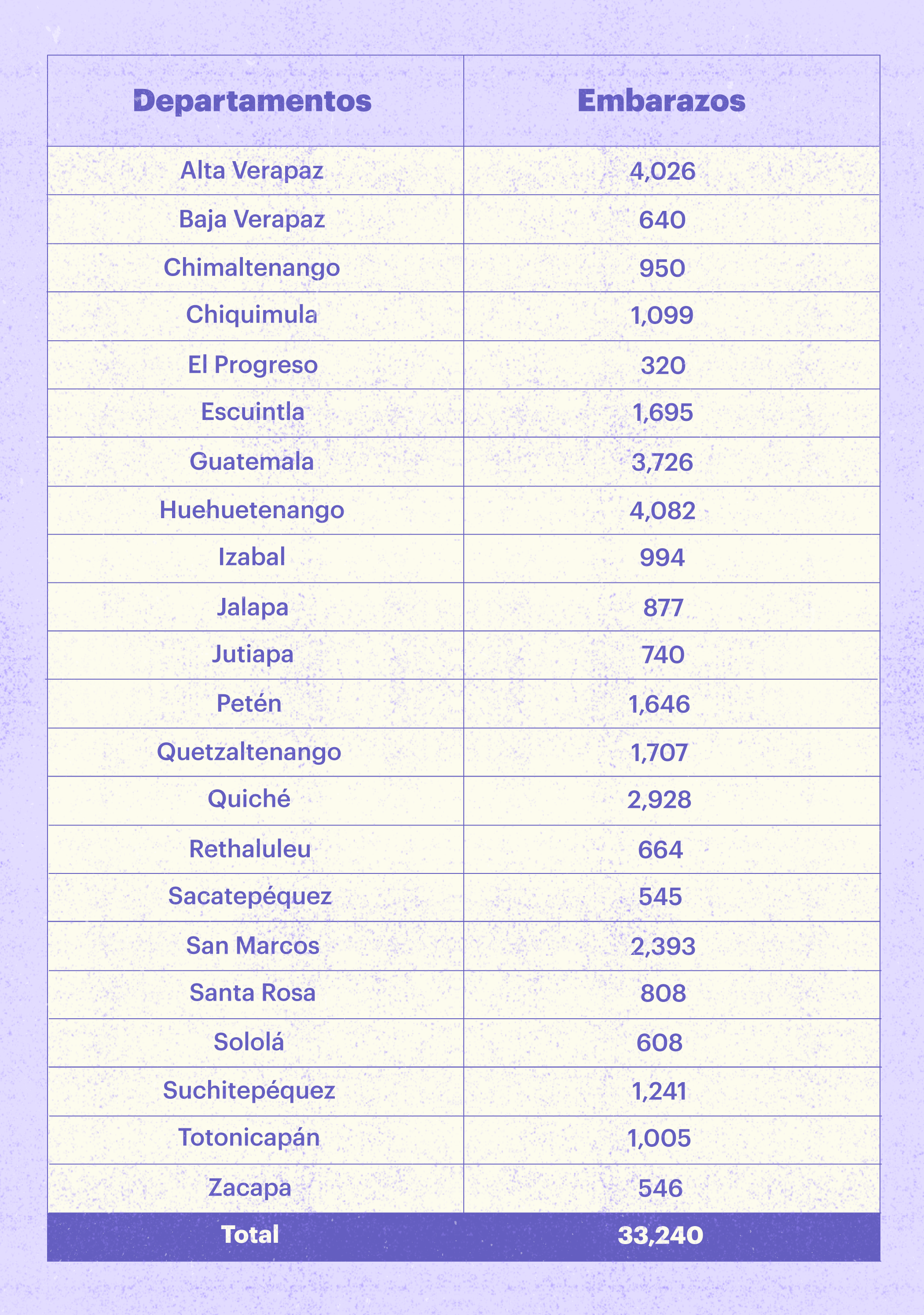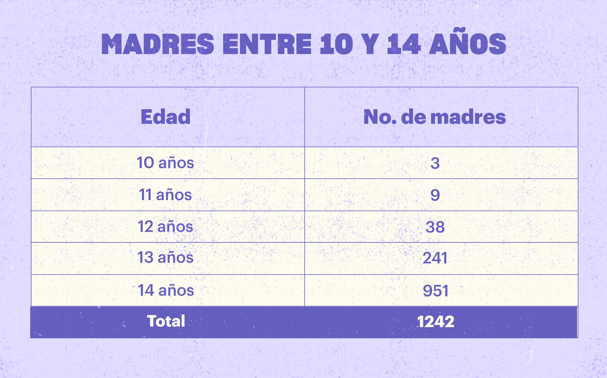 En el primer semestre del 2023, según el Observatorio de Salud Reproductiva (OSAR), en Guatemala se registraron 33 mil 240 nacimientos de madres niñas y jóvenes, con edades entre 10 a 19 años. Un total de 1 mil 242, en niñas madres que tienen edades entre 10 a 14 años, una estadística alarmante si se considera que en muchos embarazos de mujeres menores de 18 años se reporta o se tienen indicios de algún abuso sexual.
