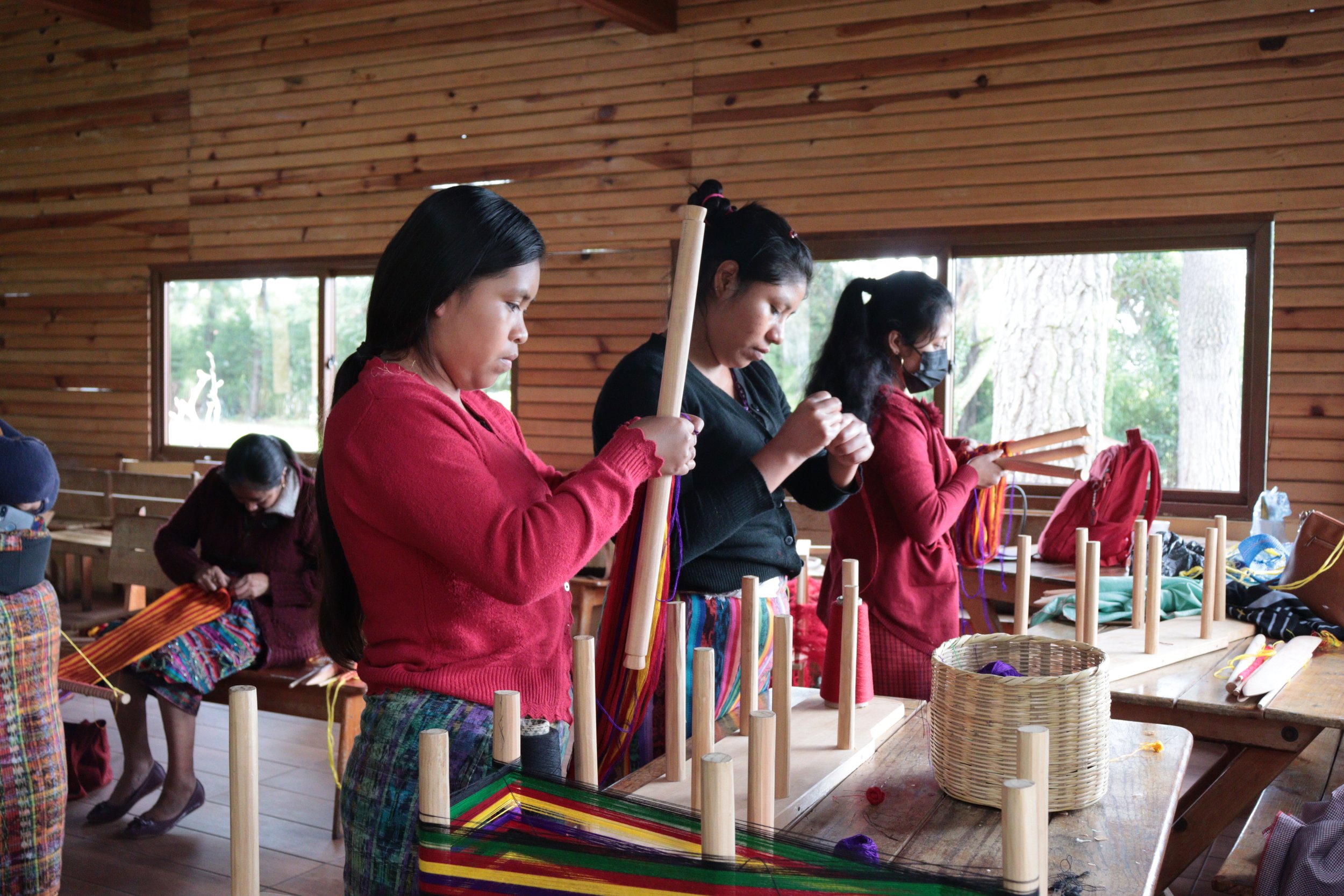 La Asociación Grupo Integral de Mujeres Sanjuaneras (AGIMS), referente en el territorio de San Juan Sacatepéquez, le dio a Ruda la oportunidad de conocer a mujeres sobrevivientes de violencia. Ellas participan en un taller de tejido “Sanando entre hilos”, donde aprenden el arte, comparten con otras mujeres y algunas de ellas, luego de graduarse, emprenden su negocio de elaboración de piezas tejidas.