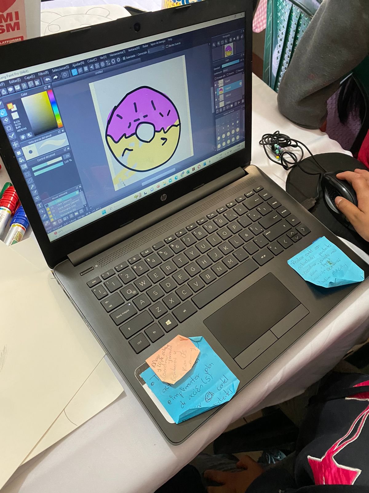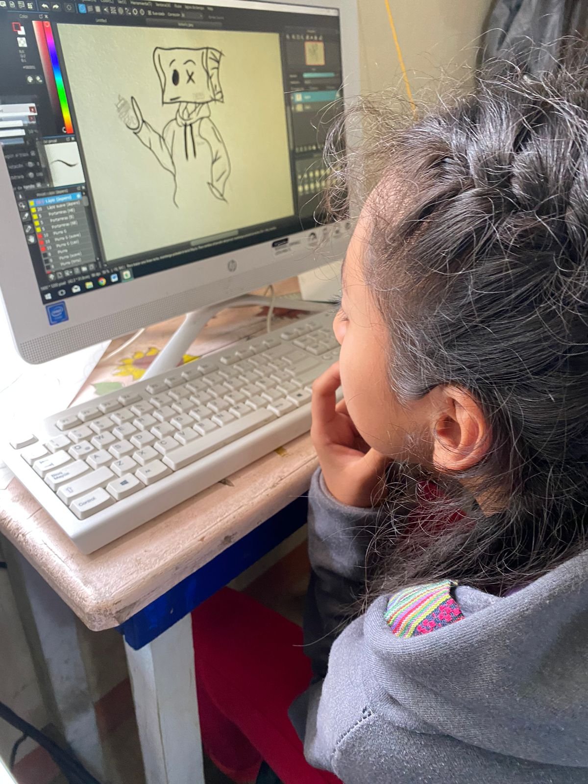 El taller de ilustración estuvo a cargo de la ilustradora y comunicadora Jasmin López. Tomaron una hoja y lápiz para dibujar el objeto o animal que les llamara la atención, para luego pasar la imagen a la computadora y realizar distintos trazos, colores y formas. La habilidad de ilustrar se hizo notar cuando algunas hicieron trazos más elaborados.