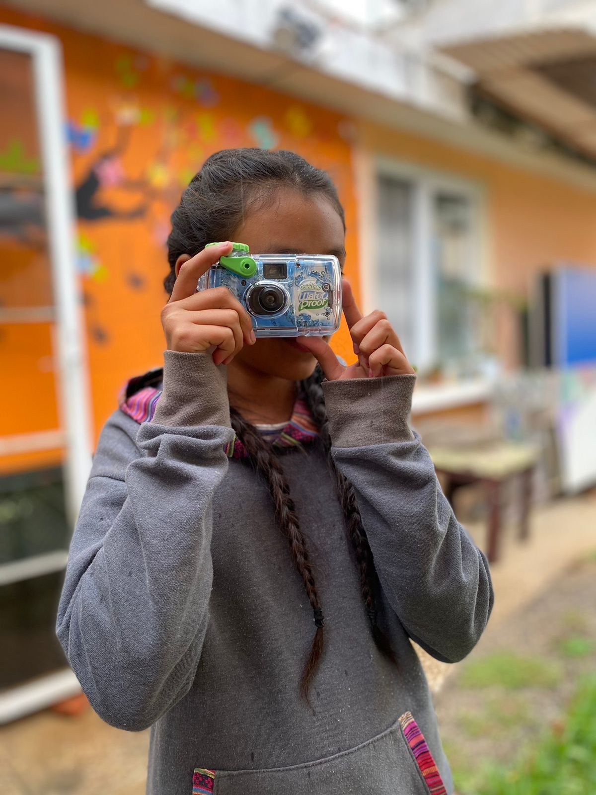 Estafanía, de 10 años, además de tomar fotografías, fue modelo para ser capturada con una foto de retrato por sus compañeras.