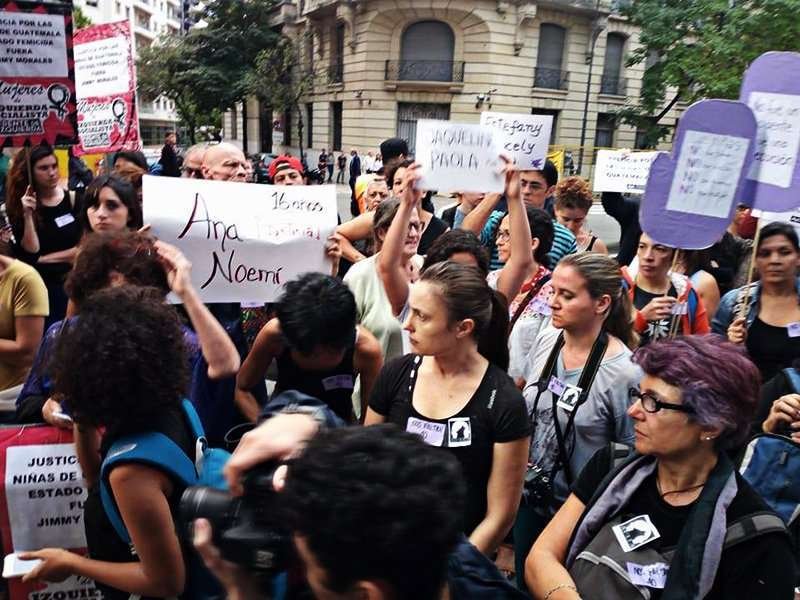 El plantón se extendió hasta las nueve de la noche. Durante la manifestación se homenajeó a las niñas pronunciando sus nombres, exponiendo las violaciones cometidas en su contra durante años y recordando la lucha que iniciaron el 7 de marzo cuando “hartas de su situación de vulneración, racialización y empobrecimiento, reivindicaron su dignidad”. Las paredes de la Embajada fueron empapeladas colocando los nombres de las víctimas, sus fotografías y carteles con las consignas: “No fue el fuego, fue el Estado”, “Nos faltan 40”, “Ni una menos”. Integrantes de diferentes organizaciones (Comisión Jacobo Árbenz, Las Rojas, Las Piqueteras, Mujeres Artistas Aúlla, Mujeres de Izquierda, Desobediencia Feminista, Movimiento Centroamericano 2 de Marzo, Colectivo Poesía, estudiantes de la Unsam) expresaron su solidaridad, indignación y se unieron al reclamo de justicia. Expusieron que la problemática que aqueja a la niñez y a las mujeres es una realidad de todos los países de Latinoamérica. Al anochecer se colocaron flores y veladoras, se gritaron consignas y hubo lectura de poesía.