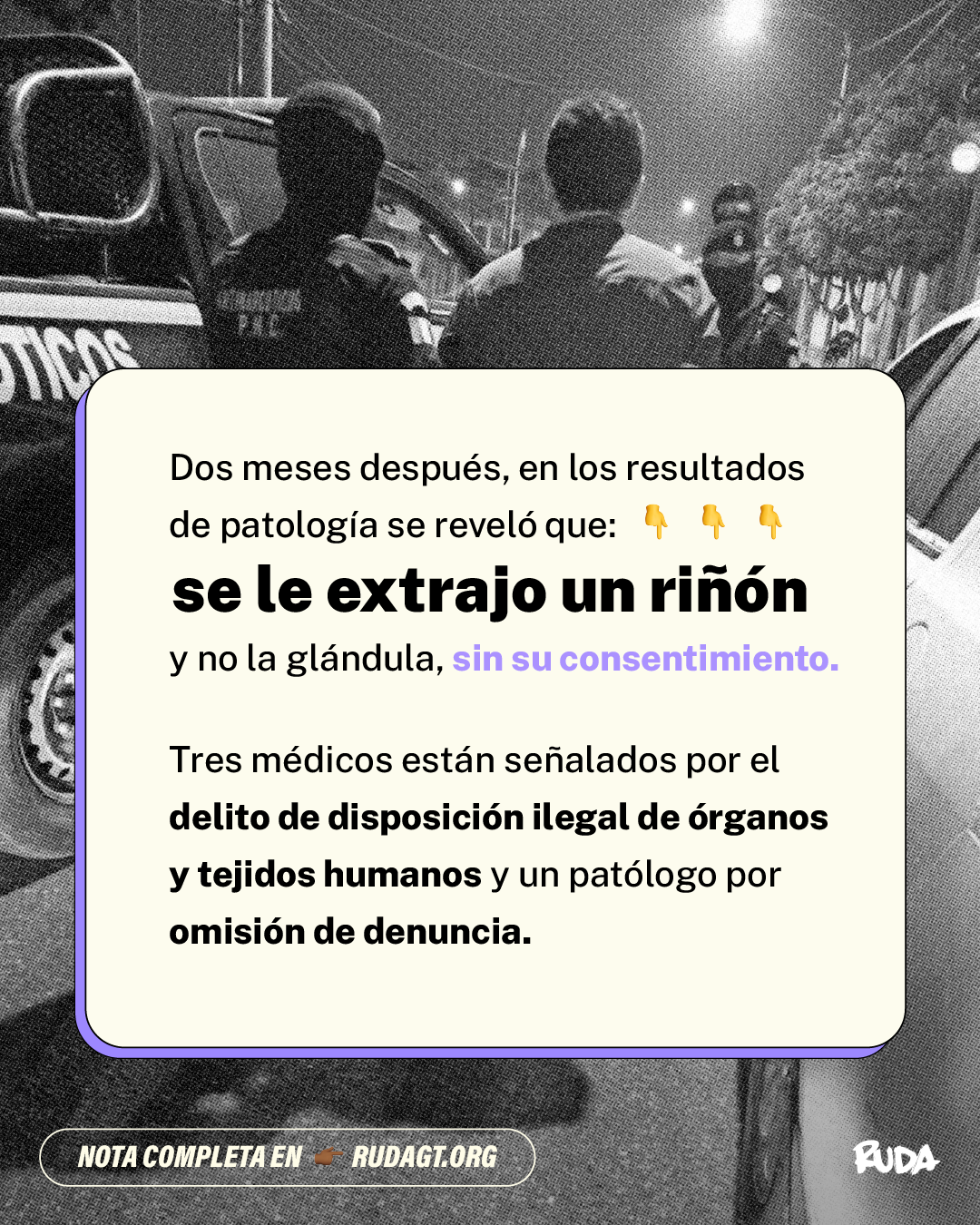 🔎 Según los investigadores, esta es la primera vez que en #Guatemala se imputará el delito de disposición ilegal de órganos y tejidos humanos. Hasta el momento tres de los cuatro médicos detenidos están en carceletas del Juzgado de Trata de Personas. ⚖️