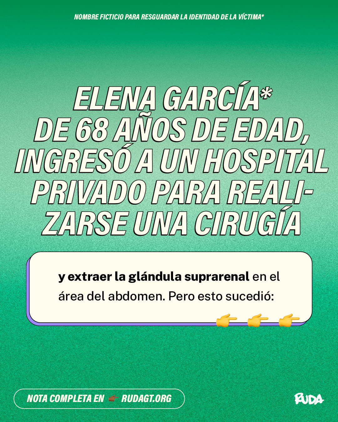 Doña Elena decidió practicarse más exámenes, entre ellos un ultrasonido que confirmó que no tenía uno de sus riñones, pero que la glándula suprarrenal seguía en su cuerpo, por lo que presentó la denuncia en mayo de 2022 al Ministerio Público (MP).