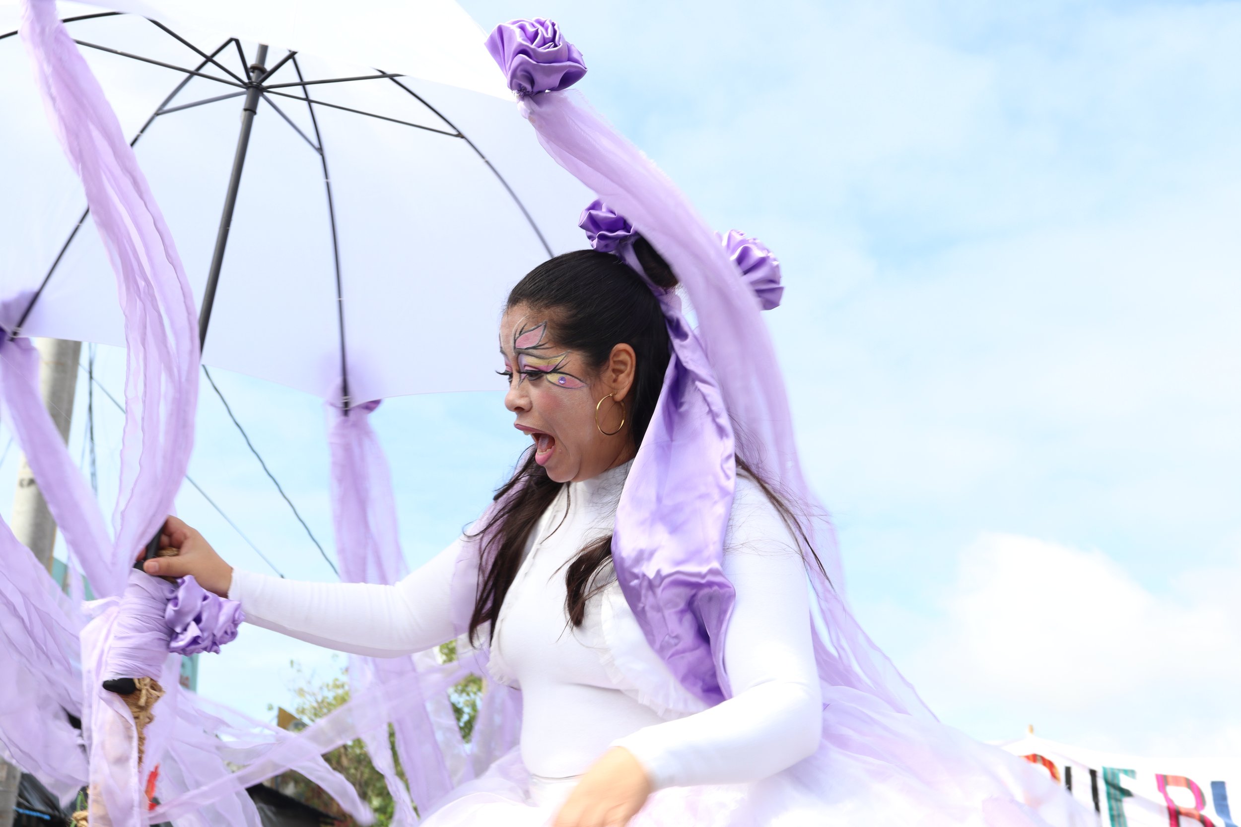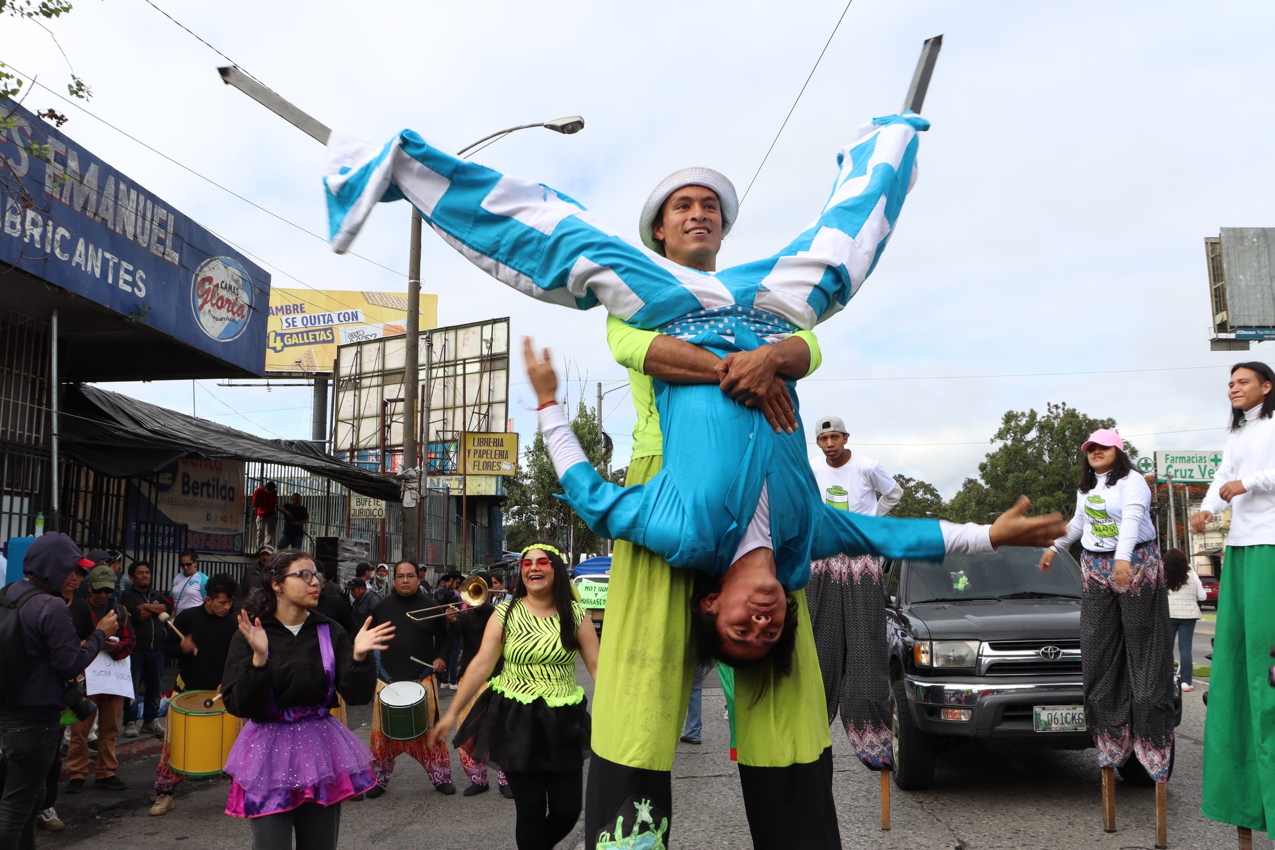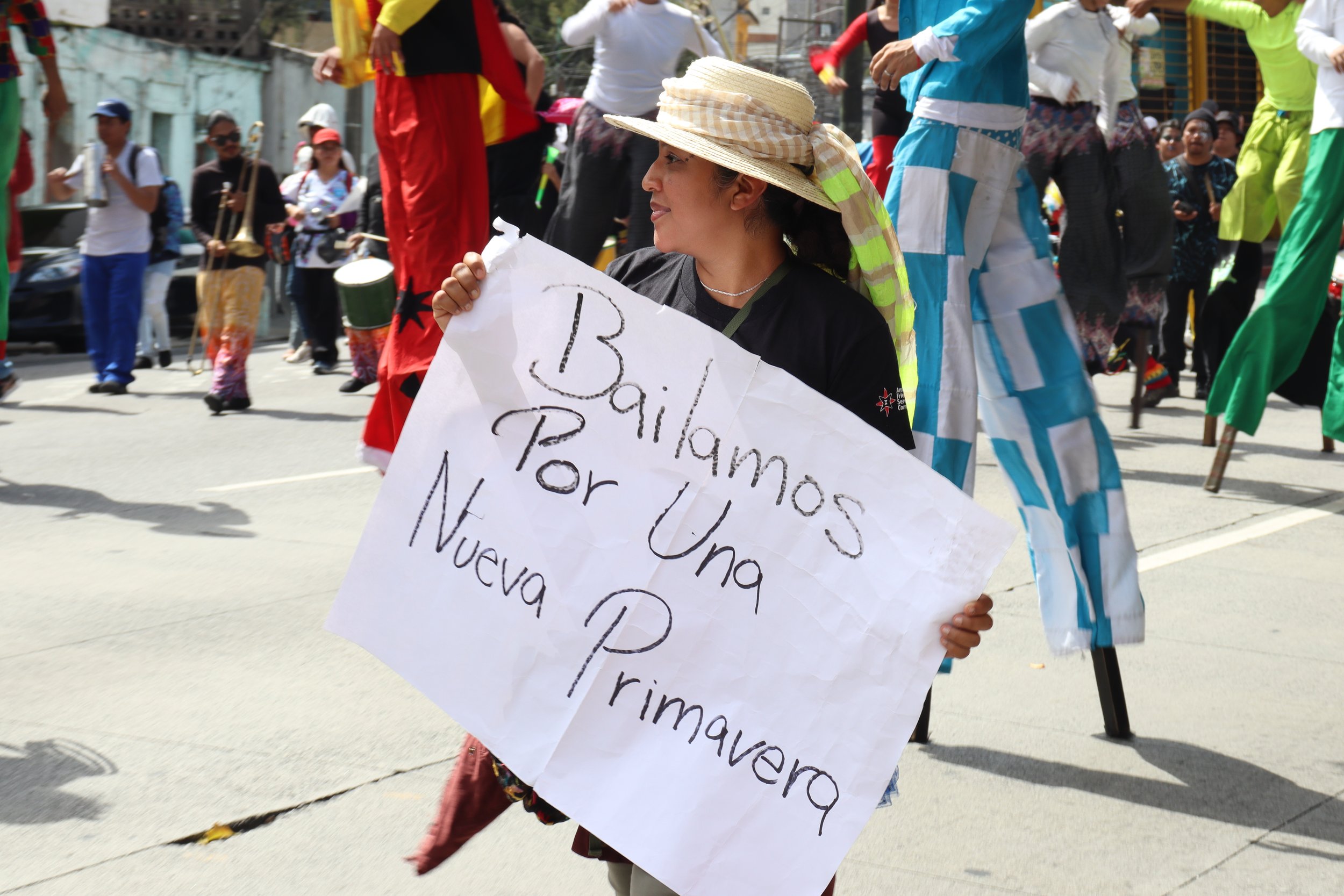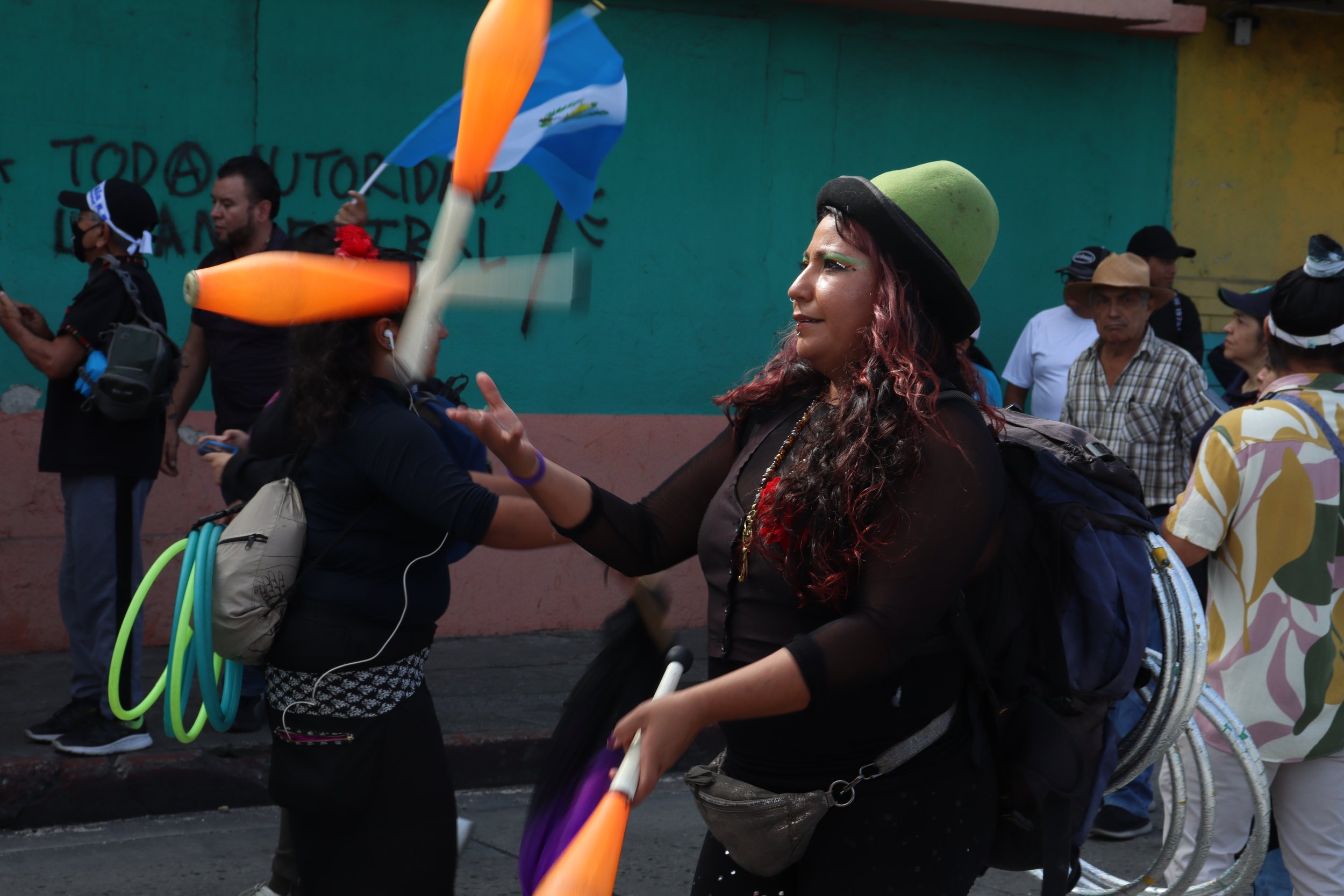 Ana Juárez, del colectivo Caja Lúdica, compartió su perspectiva en la manifestación artística de hoy. “Tras los Acuerdos de Paz, las calles se han convertido en un espacio donde el arte se manifiesta como una expresión de resistencia, aportando un componente alegre y artístico a la causa”, expresó.