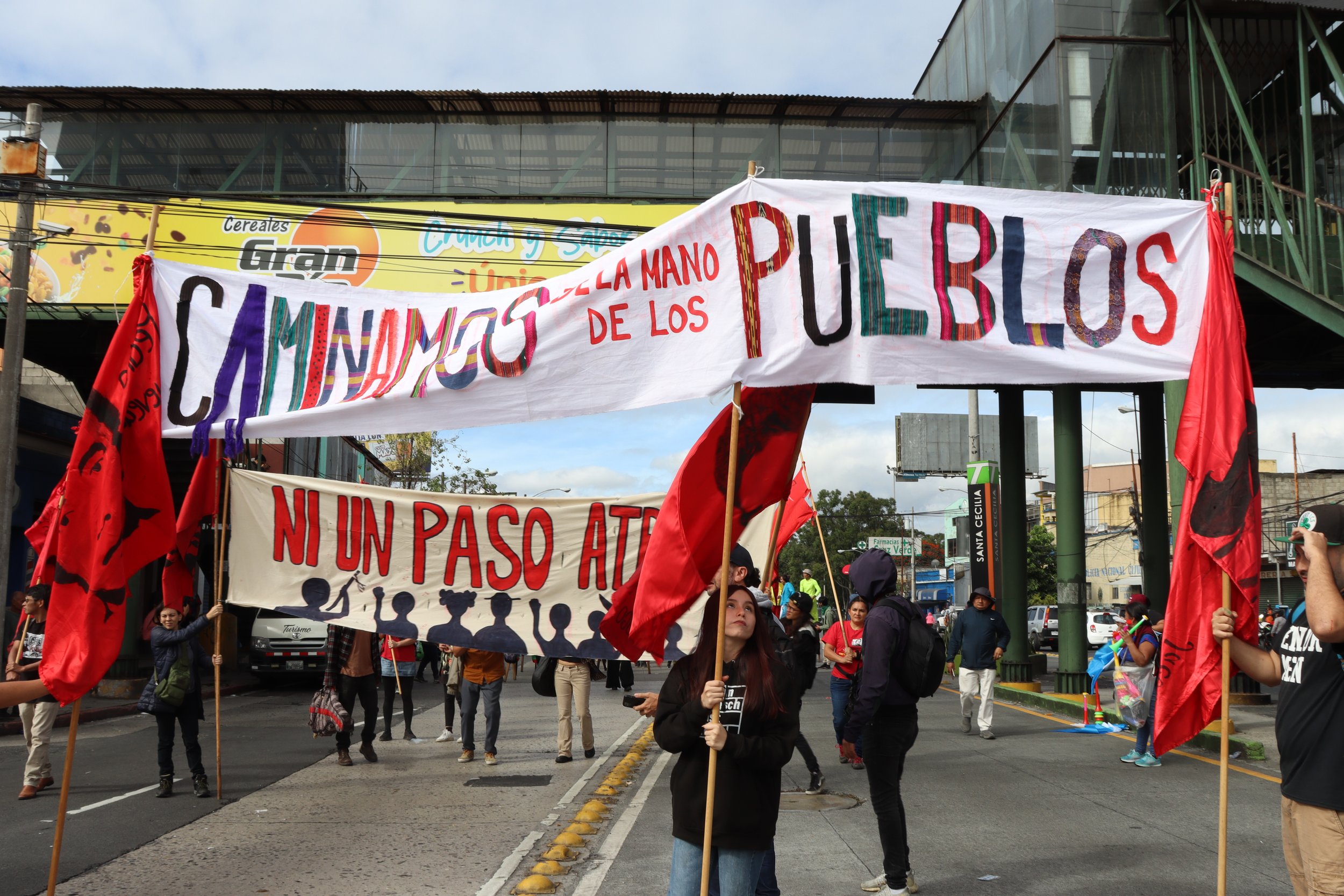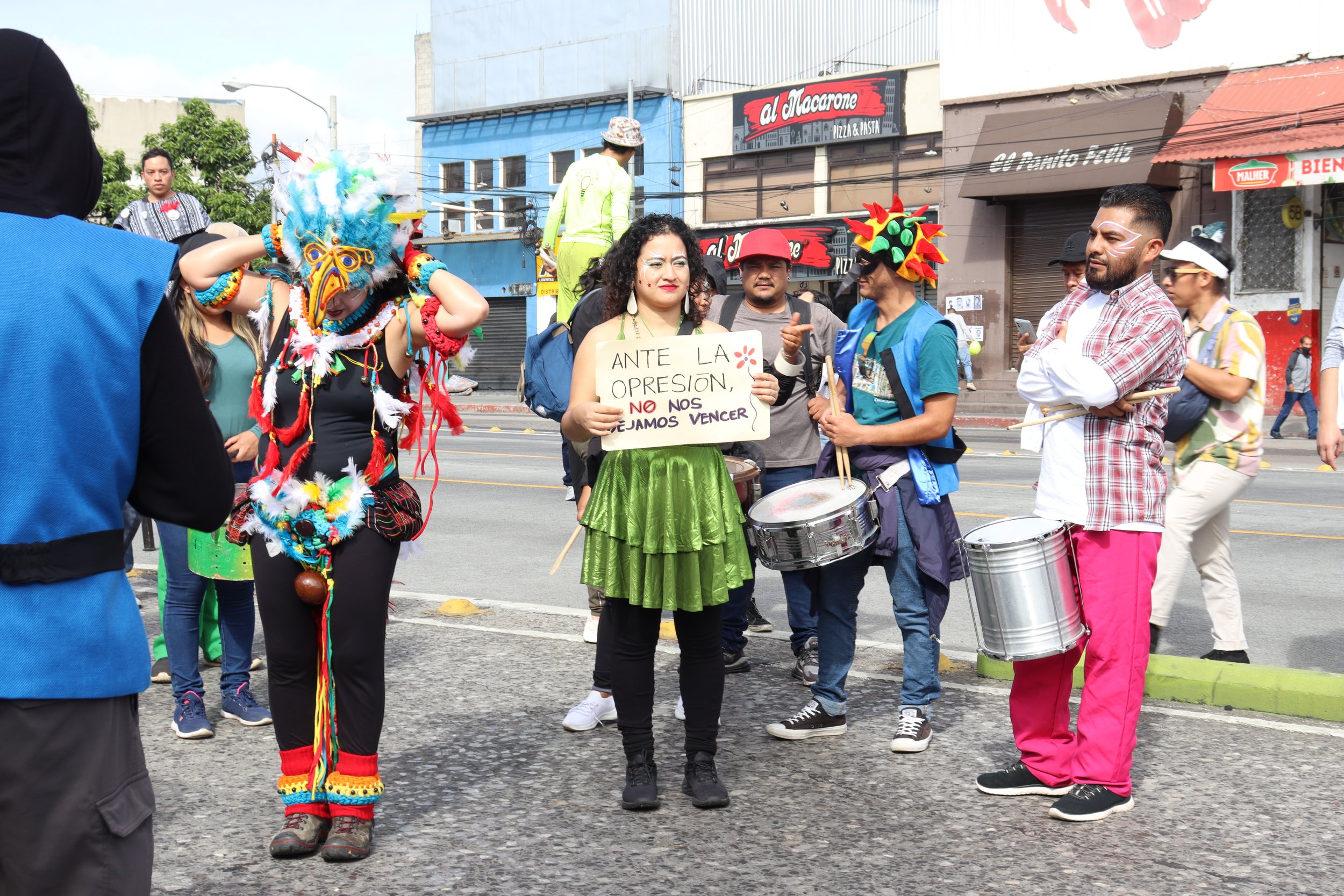 “Queremos una Guatemala más justa, solidaria y equitativa, en la búsqueda incansable de la justicia social, explicó Raúl de la colectiva de artistas durante la marcha de este bloque, que comenzó en el Trébol, en la zona 8 capitalina, y enfiló al Centro Histórico de la ciudad.