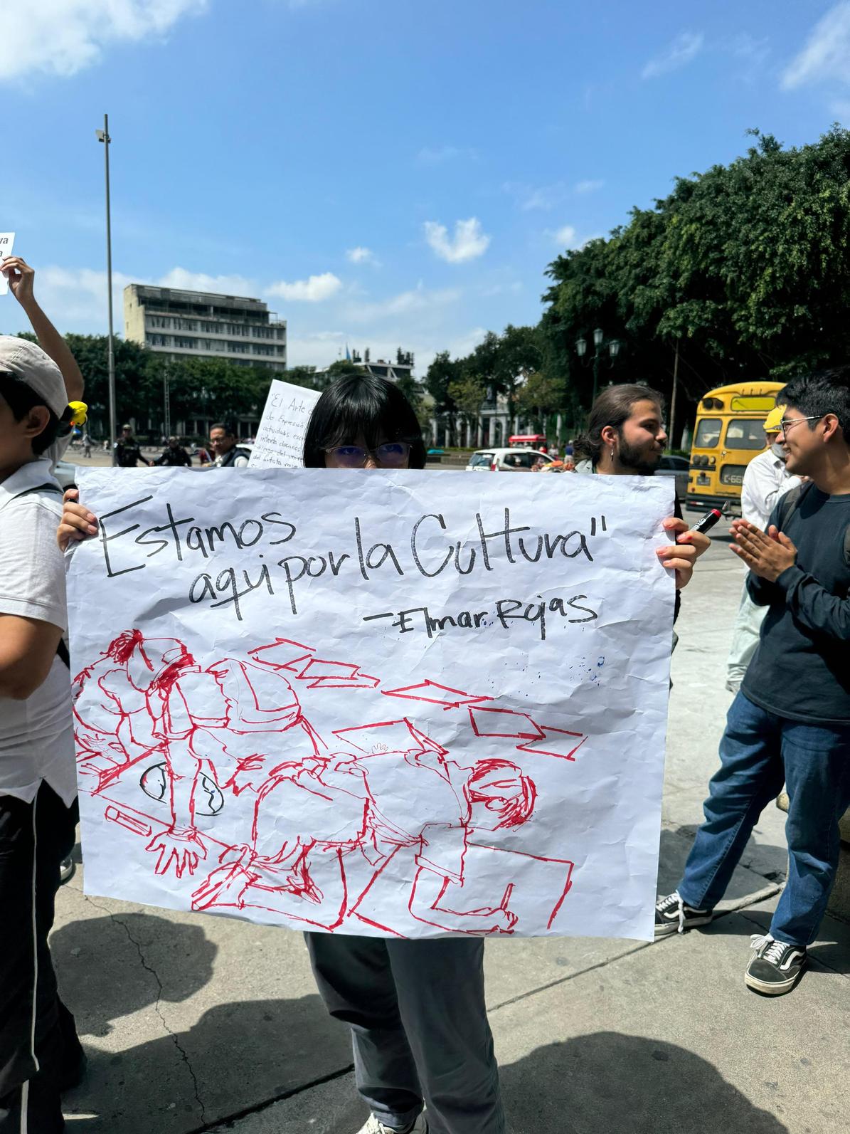 Durante la marcha de la Revolución del 20 de Octubre de este año, llamada la nueva primavera democrática, destacó un grupo de artistas que con alegría y colorido también se sumaron a las peticiones de renuncia a funcionarios corruptos.