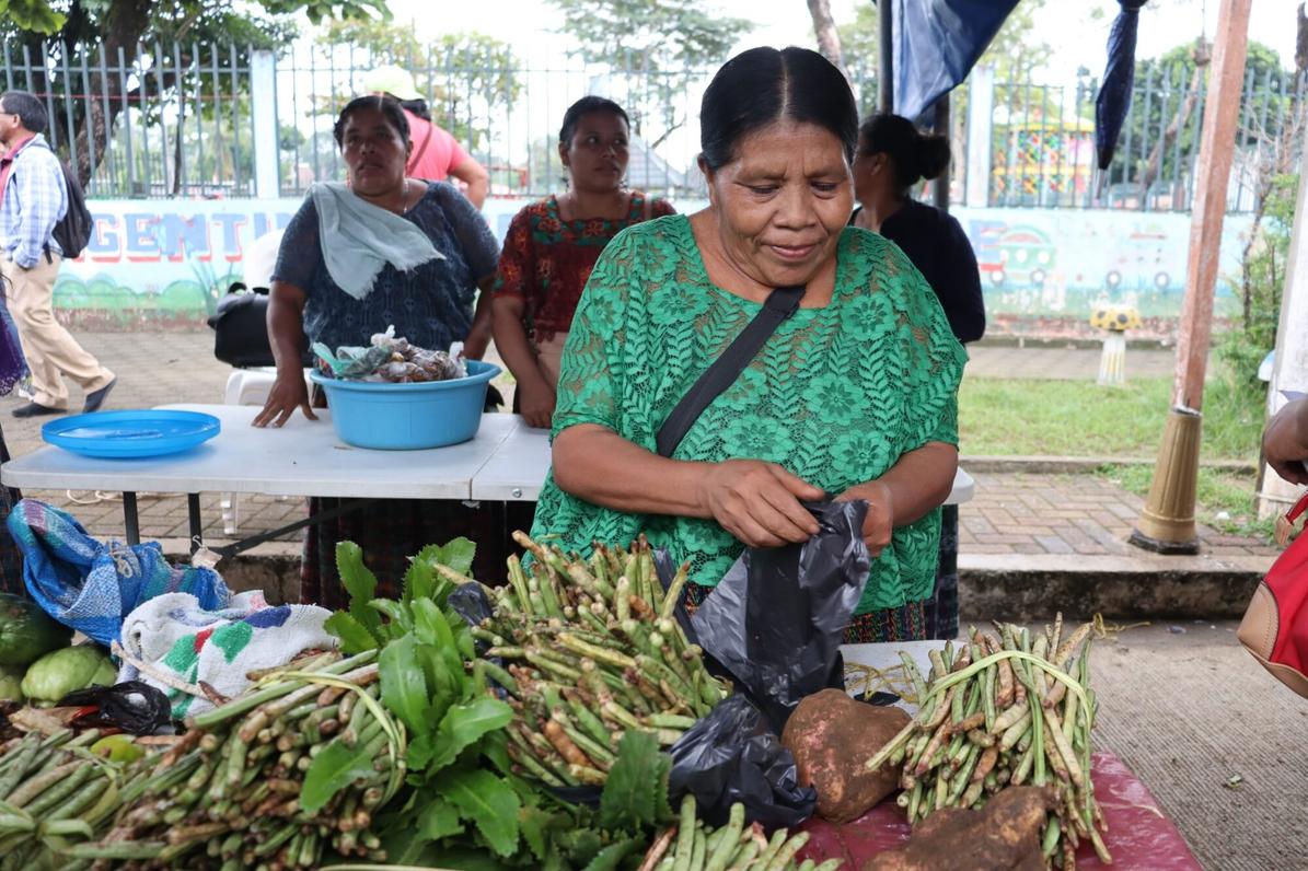 Granos básicos como frijol y maíz pueden encontrarse en este mercado, así como camote, yuca y malanga. Productos de la región como el atol shuco, tamal de jute y tamalitos de frijol también están entre las ventas ofrecidas.